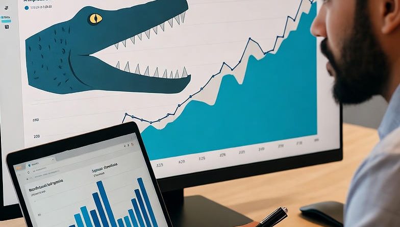 La metáfora de la “boca de cocodrilo” describe un patrón cada vez más frecuente en las métricas de Search Console: las impresiones (veces que un enlace aparece en resultados) se mantienen o crecen, mientras que los clics hacia el sitio bajan. En el gráfico, la línea de impresiones sube y la de clics baja, generando un hueco entre ambas — parecido a una mandíbula abierta.